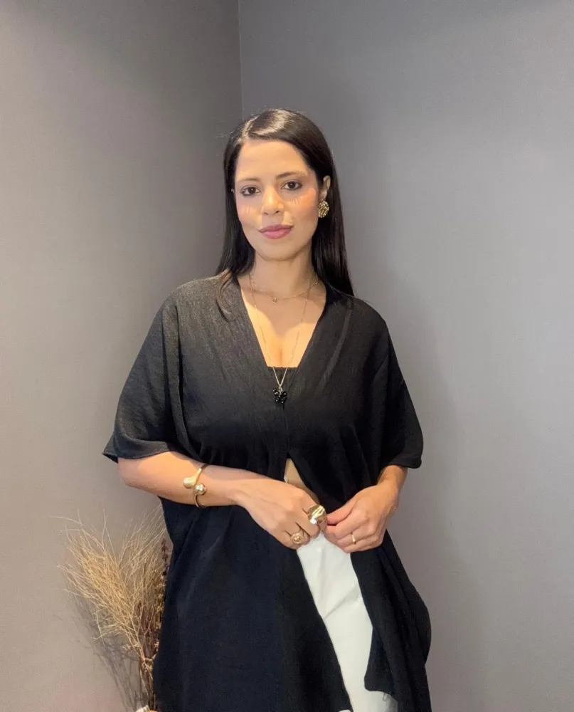 As capas transformam a silhueta, deixando o visual ainda mais elaborado, com movimento e sofisticação.